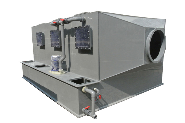 PPs臥式噴淋塔相對(duì)于立式噴淋塔而言,臥式噴淋塔高相對(duì)較低,塔底接觸面積較大。廢氣進(jìn)出口橫向通過噴淋塔,與其他設(shè)備連接方便,臥式噴淋塔適用于室內(nèi)使用。熙誠環(huán)??筛鶕?jù)客戶需要選用PPs阻燃板材或者PP板材制作,設(shè)計(jì)尺寸也可根據(jù)客戶定制。
